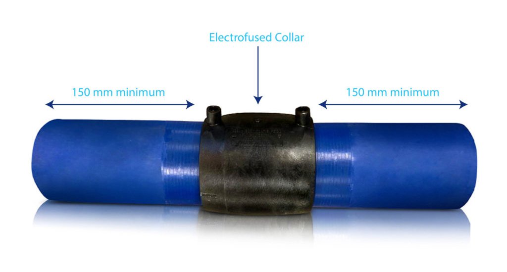 Minimum of 150mm of piping should protrude either side of the edge of the coupler.